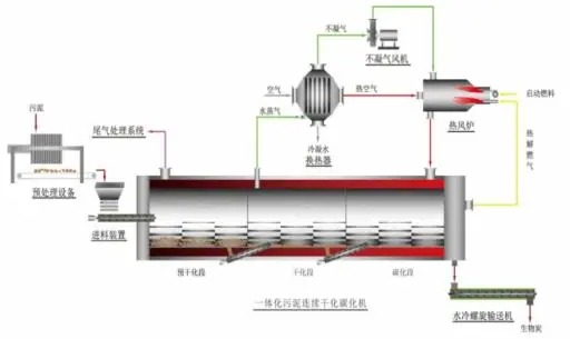 一体化污泥连续干化碳化设备的本质是三套设备合一: