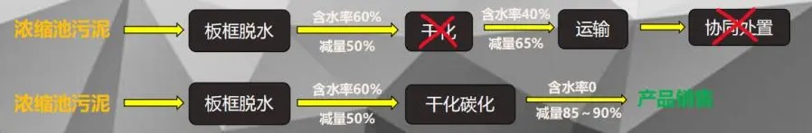 与“干化 + 协同处置”相比,省去两个环节,污泥干化碳化运行成本费用与污泥运输费相当。
